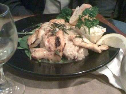 Dave had a salad and Black Sea Bass with Mushroom Risotto, Spinach and Broccoli.